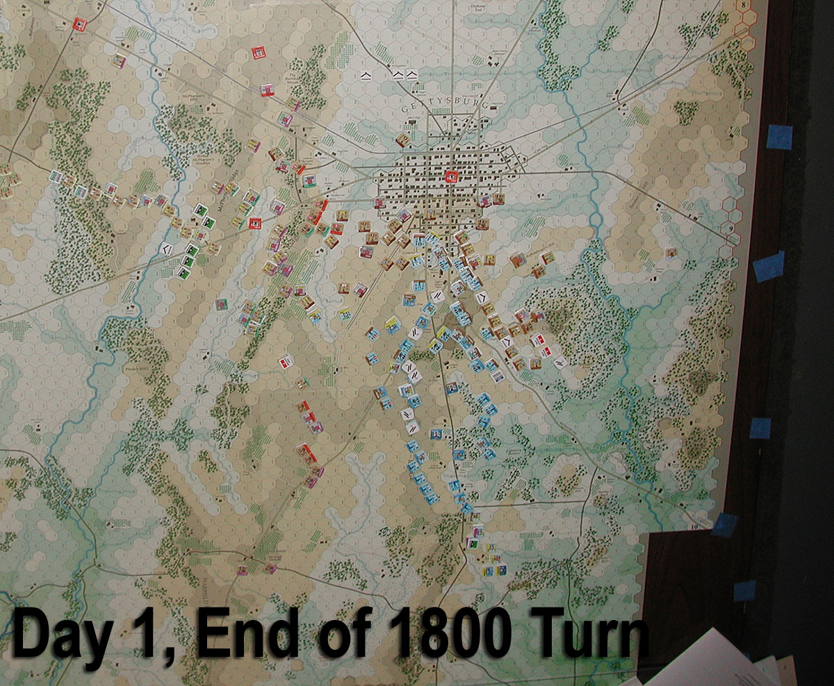 The rain slows the action to almost a standstill, the CSA manages to clear the remnants of the I corp from south of Gettysburg and the CSA finally suffers a leader loss but that's about it.