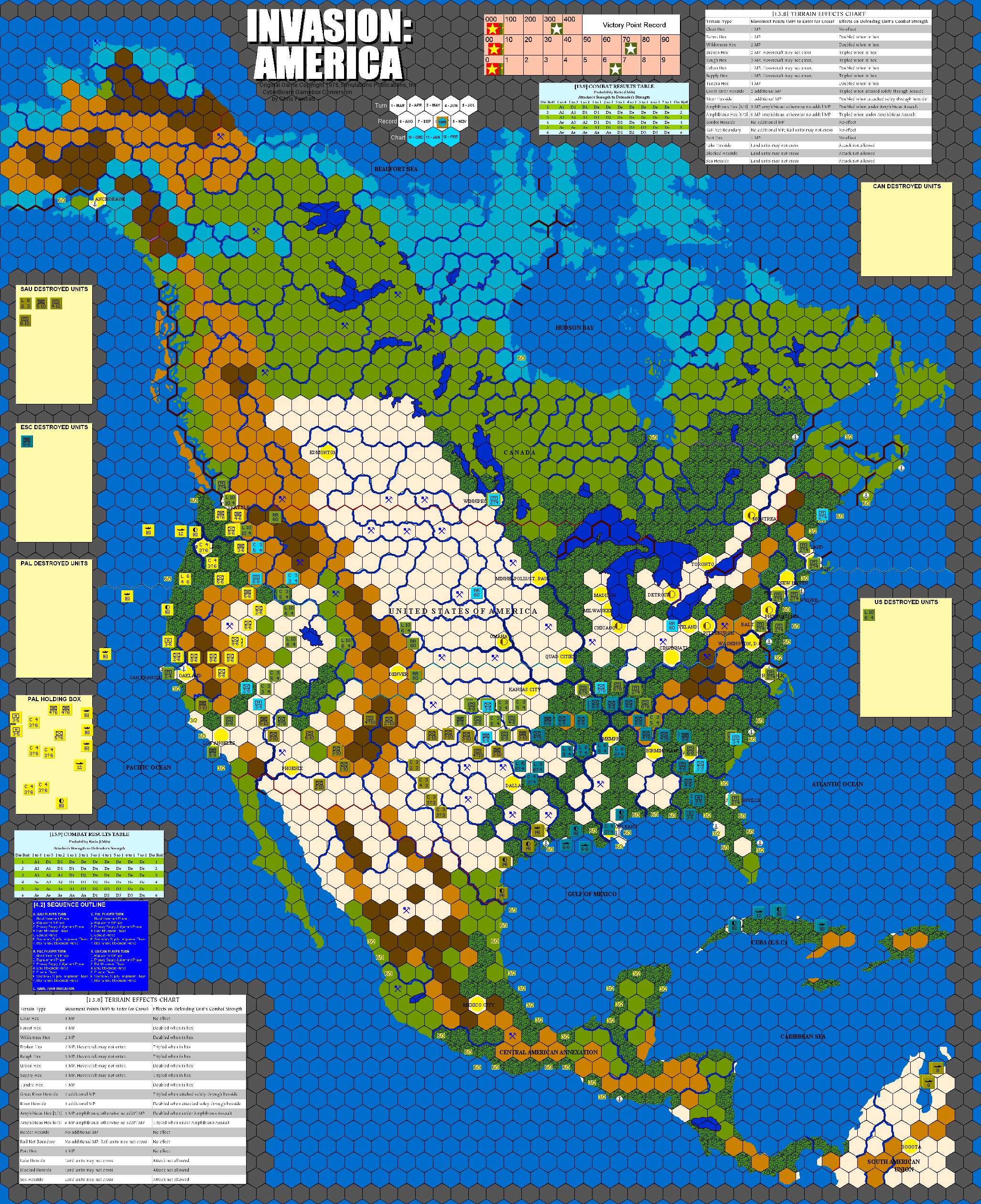My friend Bill and recently finished a spirited play of Scenario 1 in Invasion: America. The game was played using a Cyberboard module designed by Chris Fawcett.