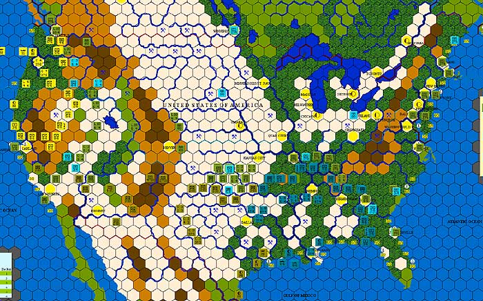 6. Outflank. I never tried this. But if I ever play again, I will. There were opportunities to create new invasion sites for the Europeans. If I wasn't so desperately trying to organize my supply for the ESC, there would have been a good opportunity to reinvade on the East Coast. By the time I could do it, the US player had beefed up a couple of holes, and the last of the available ESC units were needed in the main battlefront. This was a big worry for me the whole game – I ended up garrisoning all the naval hexes with militia units. More invasion points would have canceled some of the advantage the rail units give the US player in responding to holes.